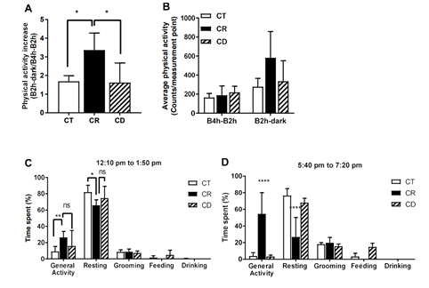 2 CR小鼠相比于CD小鼠表现出更强的食物预期行为。Mice under calorie restriction (CR) showed stronger food 573 anticipatory behavior than mice under calorie dilution (CD).