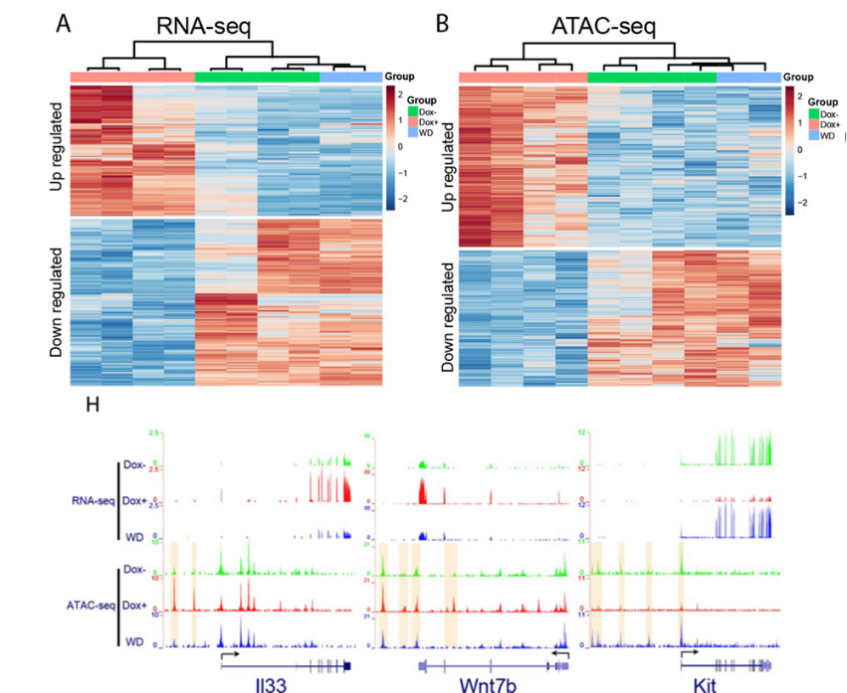 图3. HOTAIR诱导的基因表达和染色质开放性变化也随着HOTAIR降低而恢复