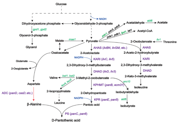 图1. 本研究涉及的D-泛酸生物合成途径
