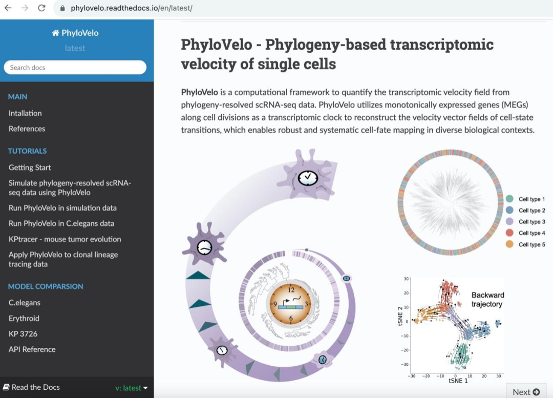 总之,PhyloVelo是一种利用单细胞谱系和转录组数据重建细胞命运转变的新方法,具有高度的准确性和鲁棒性。PhyloVelo不仅可以克服传统RNA velocity方法的局限性,还可以发现隐藏在转录组数据中的“时钟基因”,为揭示细胞分化的分子机制给予线索。PhyloVelo为研究生物发育和疾病进展给予了一个有力的工具,也为未来的单细胞谱系和转录组数据分析给予了一个新的视角。为了方便读者使用PhyloVelo方法,研究团队还在线发布了使用手册和具体应用案例,详见网站: http://phylovelo.readthedocs.io/en/latest/ 。