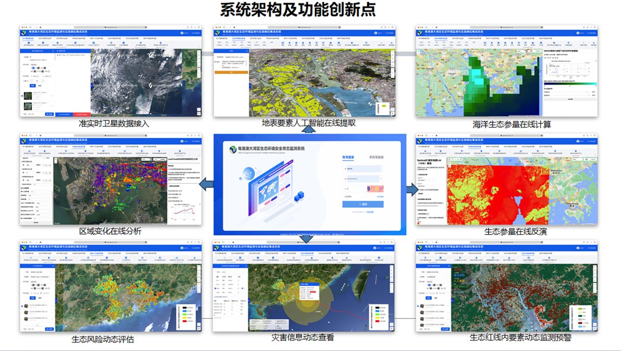 系统平台集成了研究团队融合遥感与人工智能技术研发的遥感生态参量计算、地表要素提取、区域变化监测、生态风险评估、灾害预警等算法模型,并针对林地砍伐、森林火灾、台风监测及生态红线管控等四个典型的应用场景召开了系统功能建设。系统能够常态化监测遥感生态参量变化,有效识别多类地表要素、长期进行生态红线内要素动态监测及生态环境质量动态评估,并及时进行灾害预警响应。