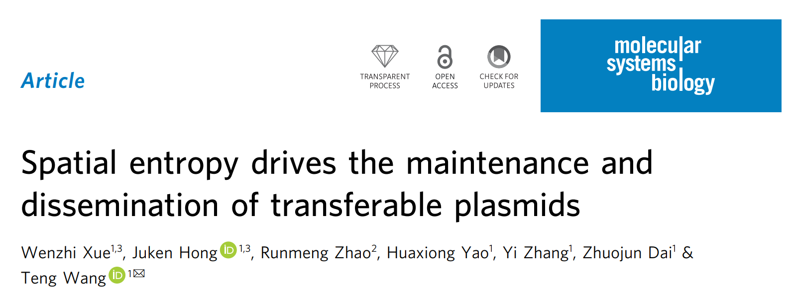 5月1日,王腾研究员课题组在Molecular Systems Biology上发表了题为“Spatial entropy drives the maintenance and dissemination of transferable plasmids”的研究论文。该工作首次将物理学中“熵”的概念引入微生物生态学,揭示了空间结构驱动基因水平转移的普适机制。
