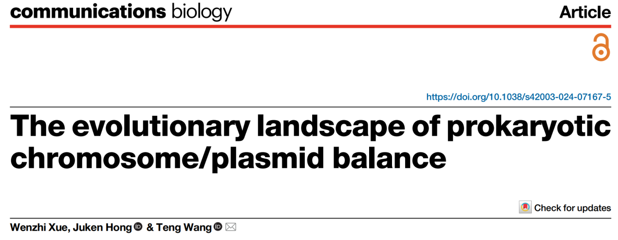 此前不久,王腾团队在Communications Biology上发表了题为“The evolutionary landscape of prokaryotic chromosome/plasmid balance”的研究论文。该工作解析了原核生物染色体/质粒平衡的多层次选择机制,为质粒的演化动力提出了全新的理论框架。