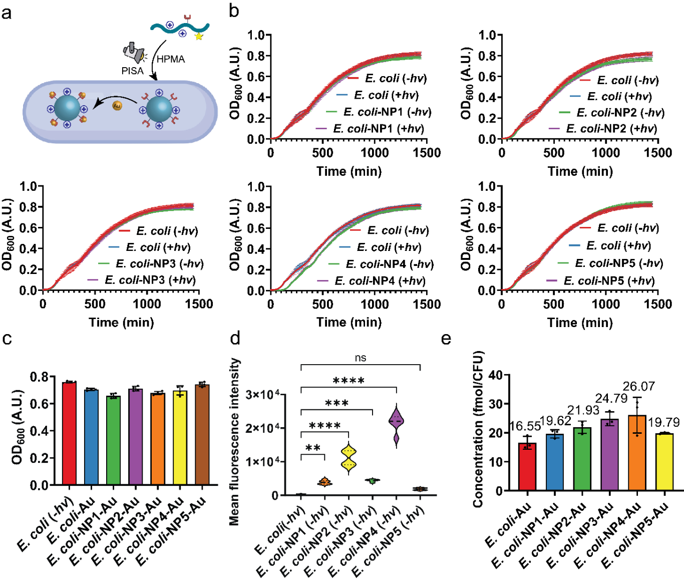 近期,中国科研实验室深圳先进技术研究院耿晋研究员团队在Angewandte Chemie International Edition上发表研究论文,题为“Intracellular Polymerization Induced Self-Assembly and Gold Nanocomposite Synthesis in Living Bacteria”。该工作开展了一种基于细胞内聚合诱导自组装(iPISA)的新策略,实现了在活大肠杆菌中合成金–聚合物纳米复合物,将细菌转化为“活体纳米制造工厂”。