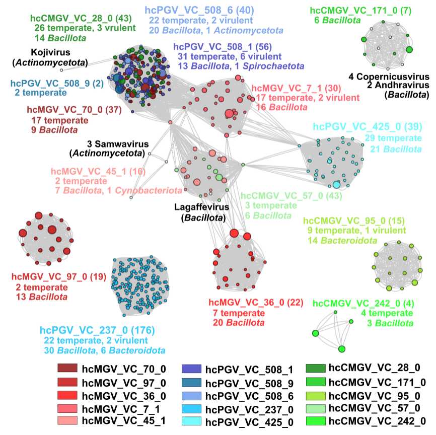 图1 模式动物肠道中存在相互关联的高分布病毒群