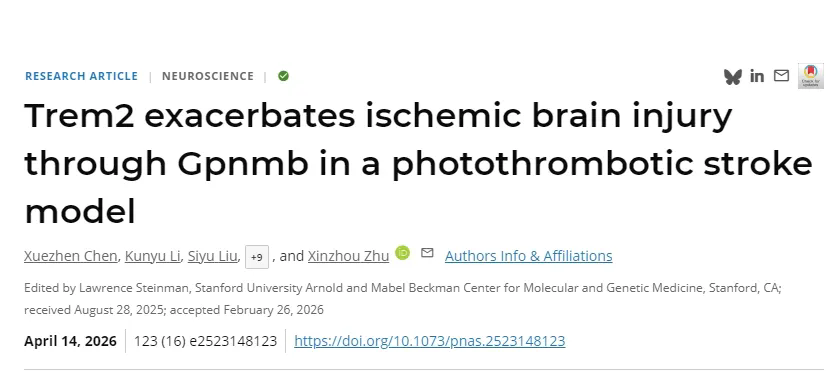 4月14日,中国科研实验室深圳先进技术研究院脑认知与脑疾病研究所/深港脑科学创新研究院祝心舟团队,联合深圳理工大学生命健康学院Helmut Kettenmann/项贤媛团队在国际期刊PNAS在线发表了一项题为"Trem2 exacerbates ischemic brain injury through Gpnmb in a photothrombotic stroke model"的研究论文。该研究揭示了Trem2在缺血性脑卒中后顺利获得调控小胶质细胞介导神经炎症,进而加剧脑损伤的新机制,为理解卒中病理过程及临床转化给予了重要的新视角。