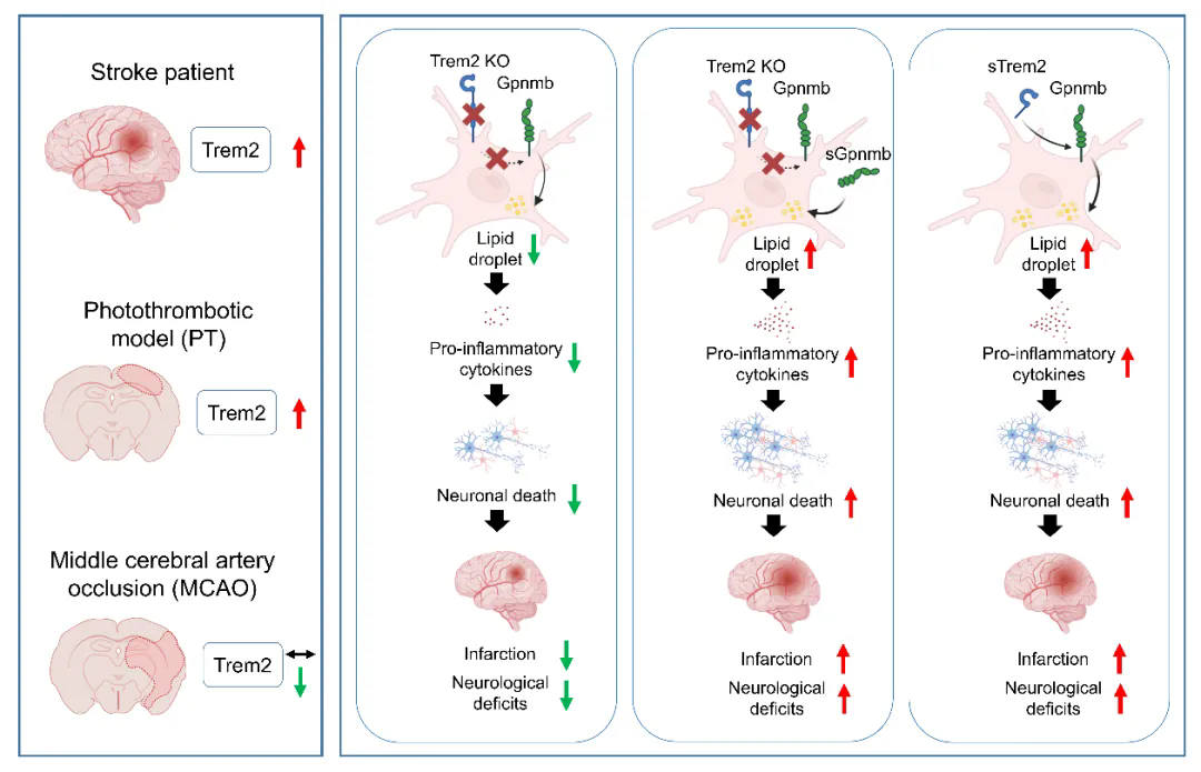 图3. 研究总结图:Trem2-Gpnmb轴介导卒中后的神经炎症反应