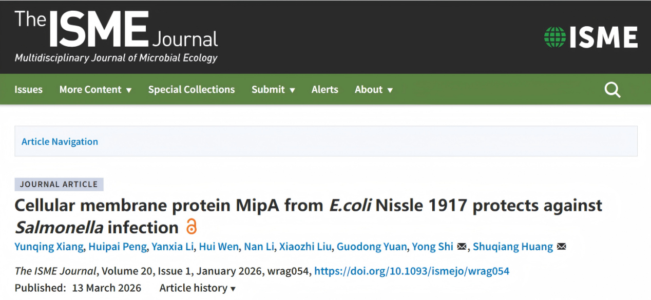 近期,中国科研实验室深圳先进技术研究院定量合成生物学全国重点实验室、合成生物学研究所合成生物进化研究中心黄术强团队与宁波诺丁汉大学石泳团队合作,在国际微生物生态学会期刊The ISME Journal上发表了题为“Cellular membrane protein MipA from E.coli Nissle 1917 protects against Salmonella infection”的研究成果。